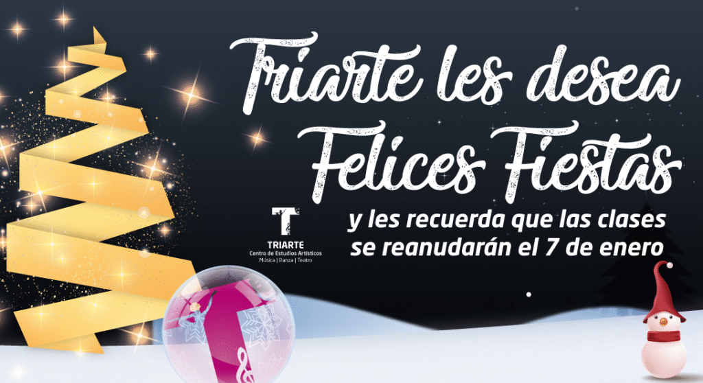 Vacaciones de NavidadTriarte les desea Felices Fiestas y les recuerda que las clases se reanudarán el martes 7 de enero