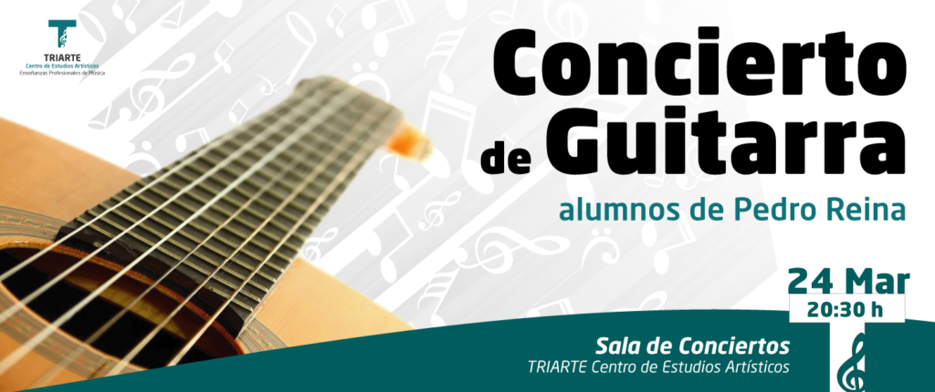 El viernes 7 de abril a las 20:30 h los alumnos de nuestro profesor Pedro Reina nos ofrecerán concierto de guitarra. El concierto tendrá lugar en nuestra sala de conciertos y la entrada […]